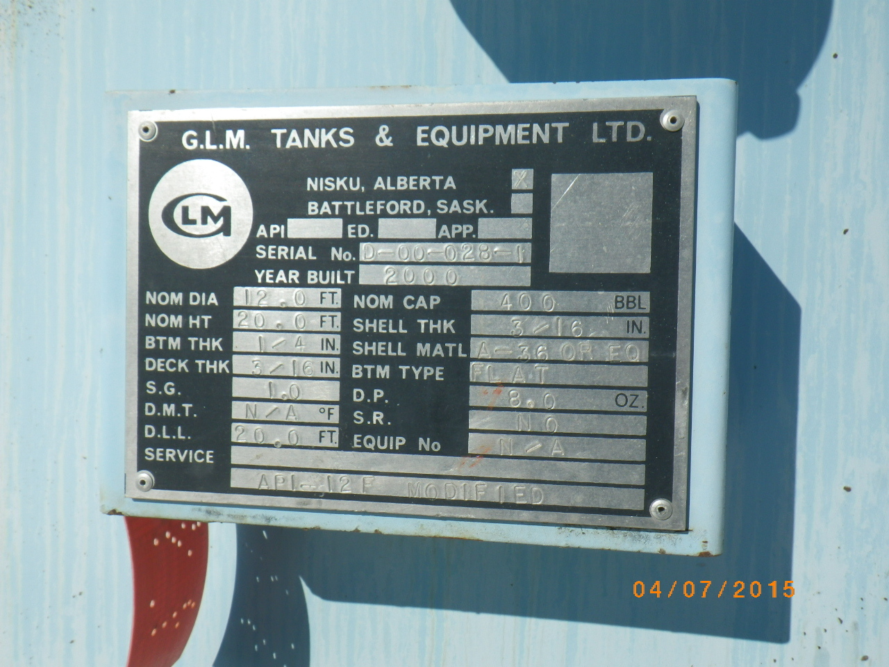 Tank Capacity (BBL) 400