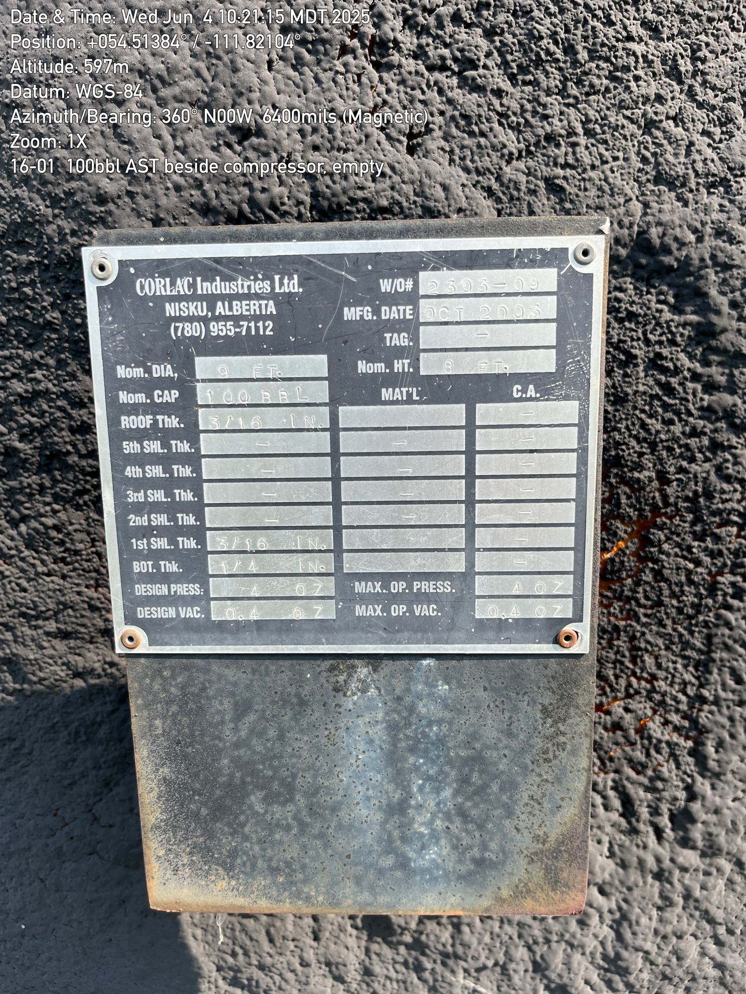 Tank Capacity (BBL) 100