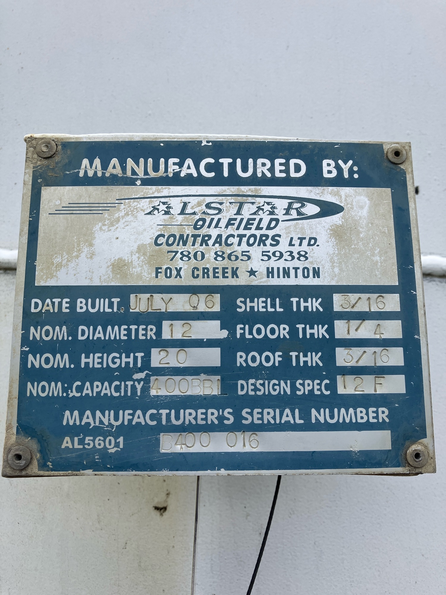 Tank Capacity (BBL) 400