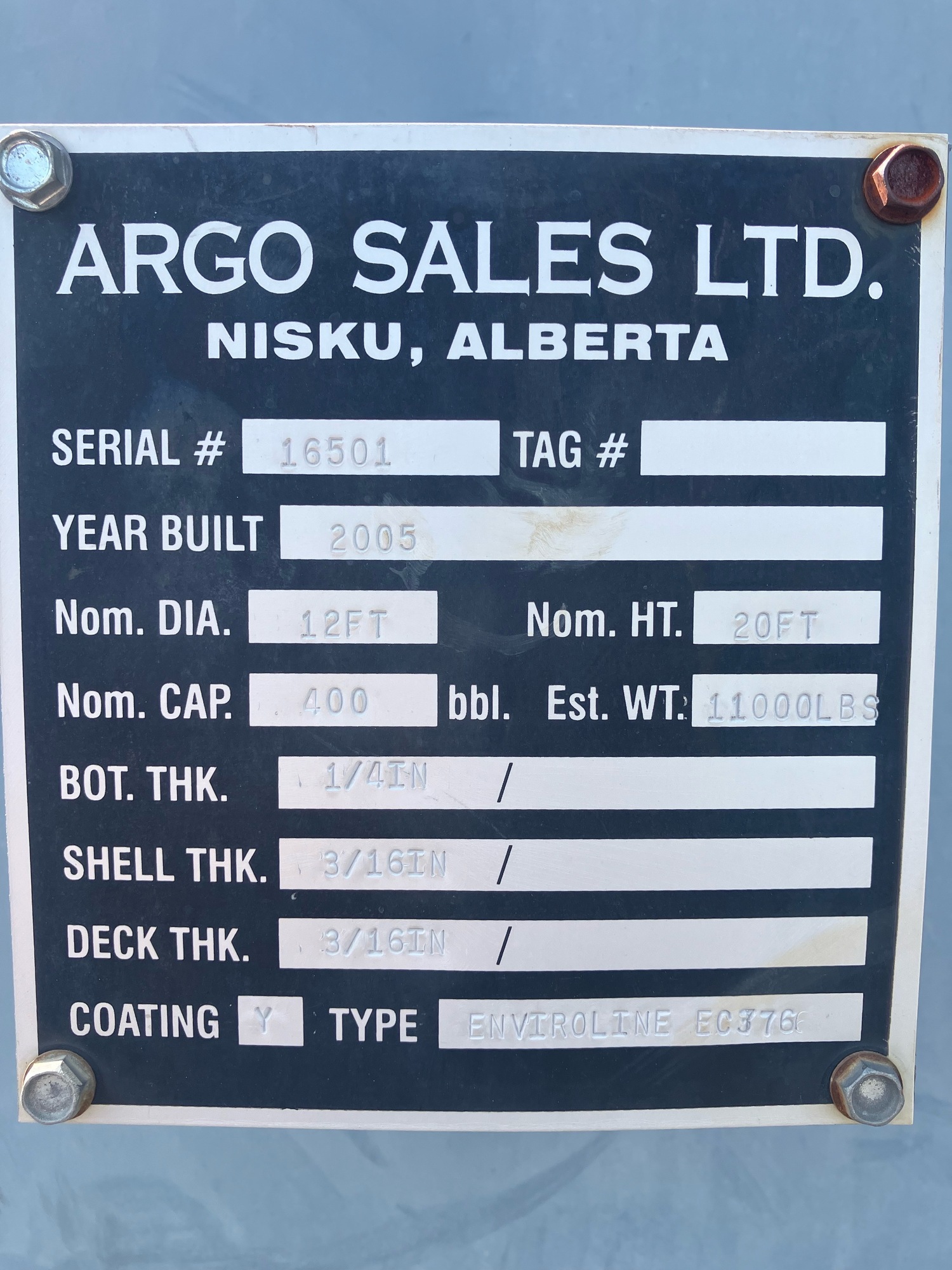 Tank Capacity (BBL) 400