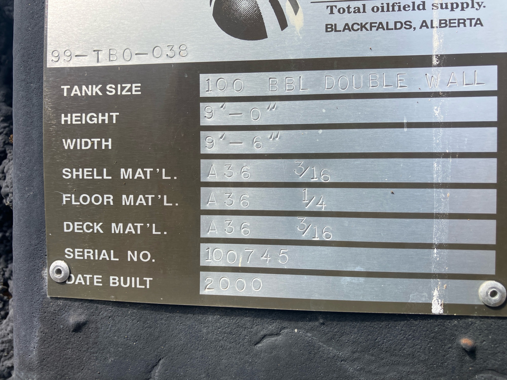 Tank Capacity (BBL) 100