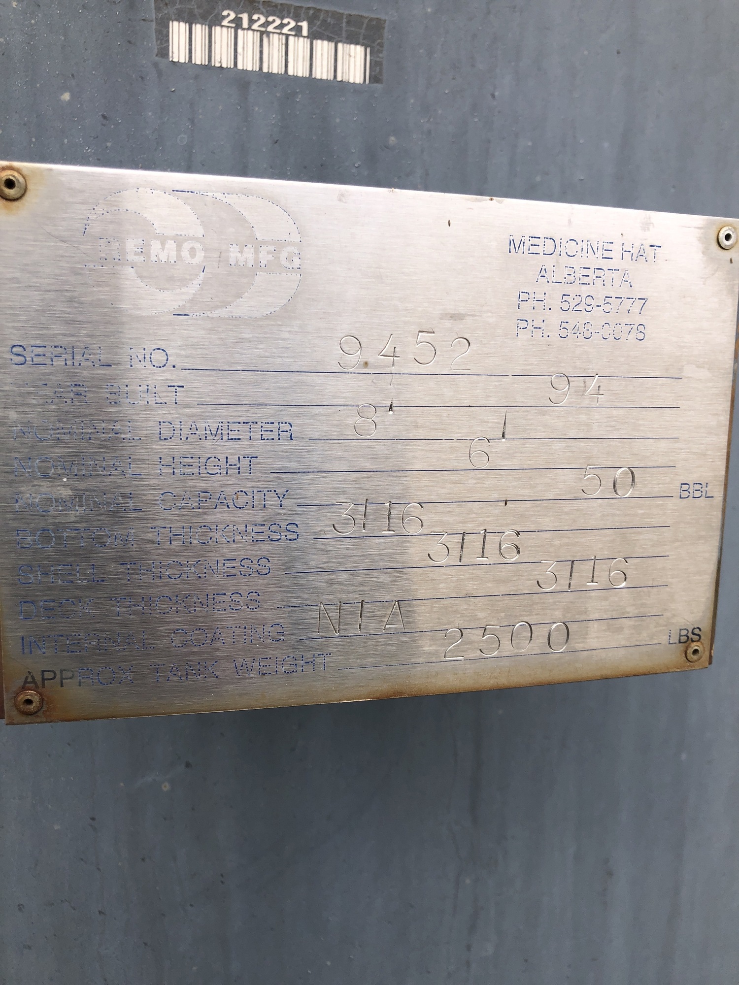 Tank Capacity (BBL) 50