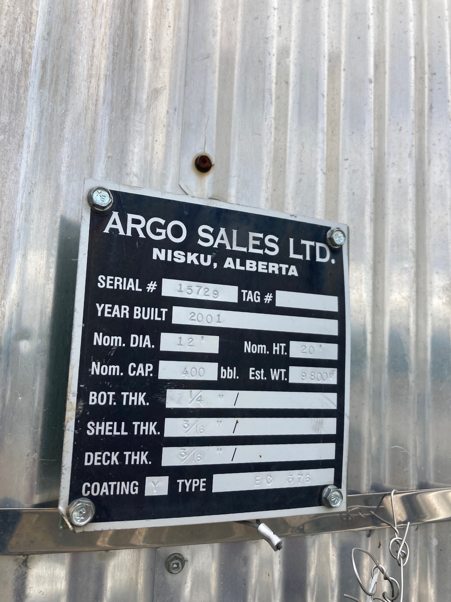 Tank Capacity (BBL) 400