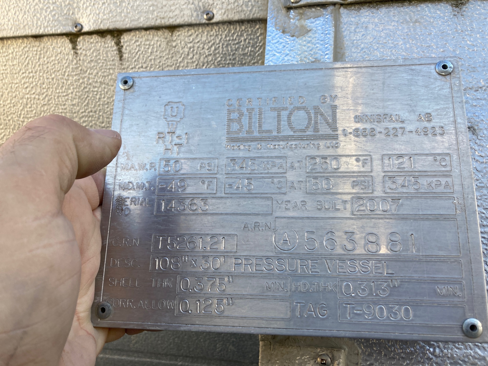 340 bbl storage vessel 108" X 30'