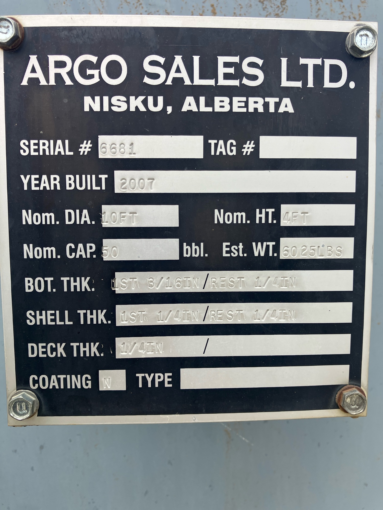 Tank Capacity (BBL) 50