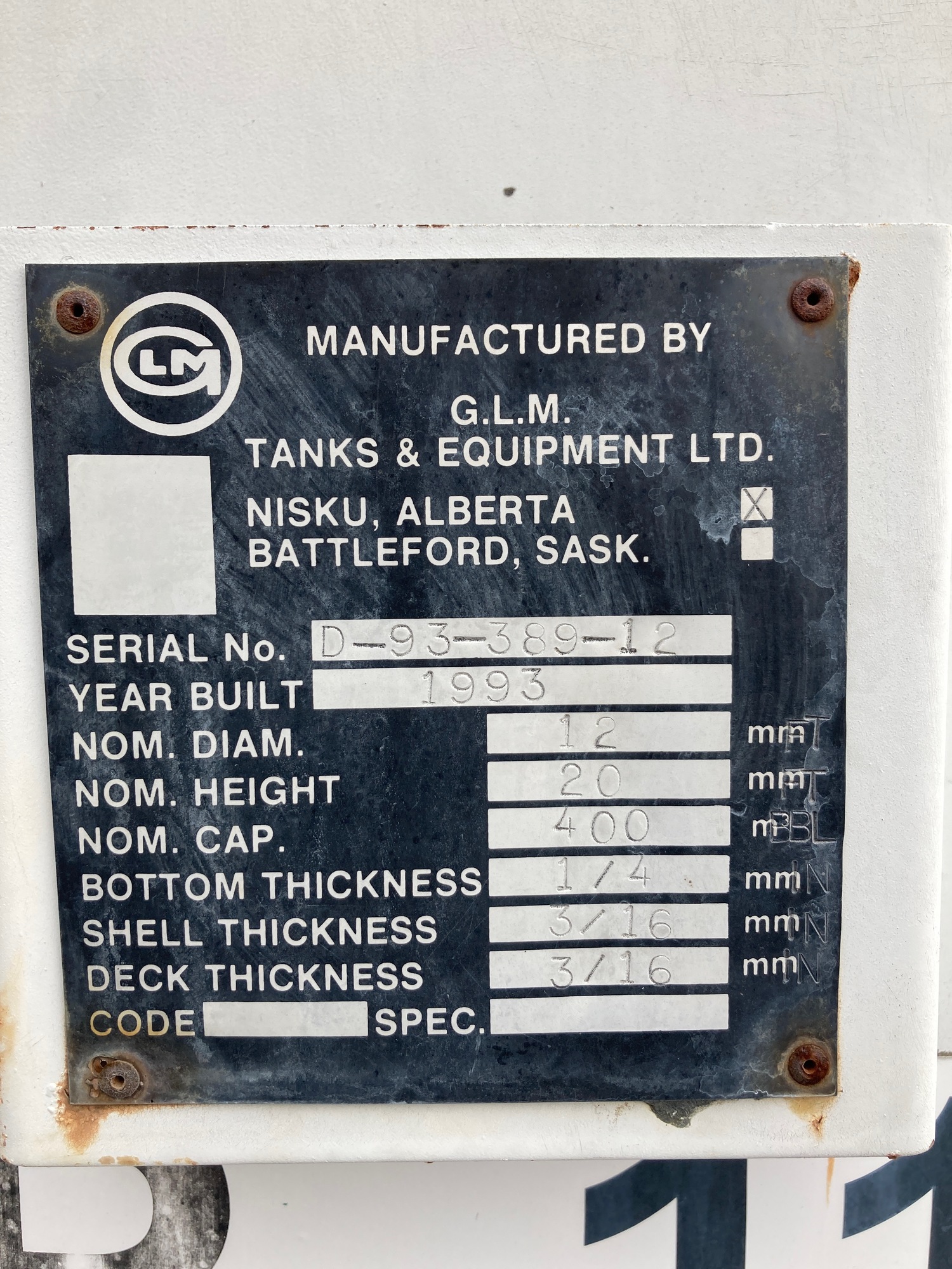 Tank Capacity (BBL) 400