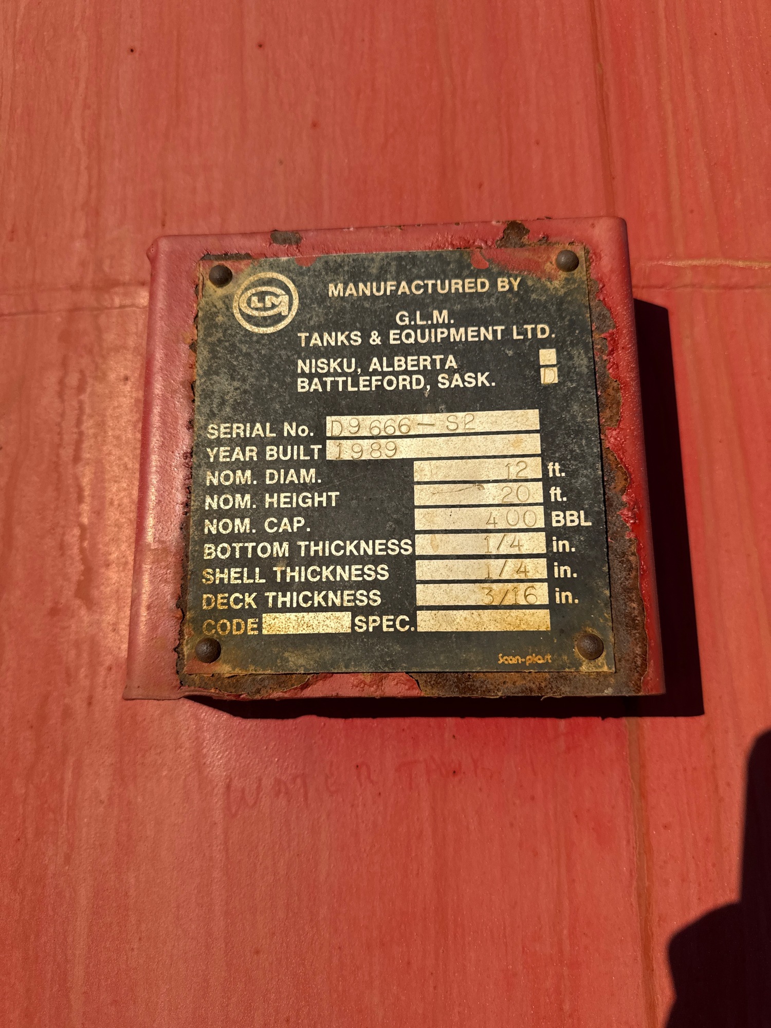 Tank Capacity (BBL) 400