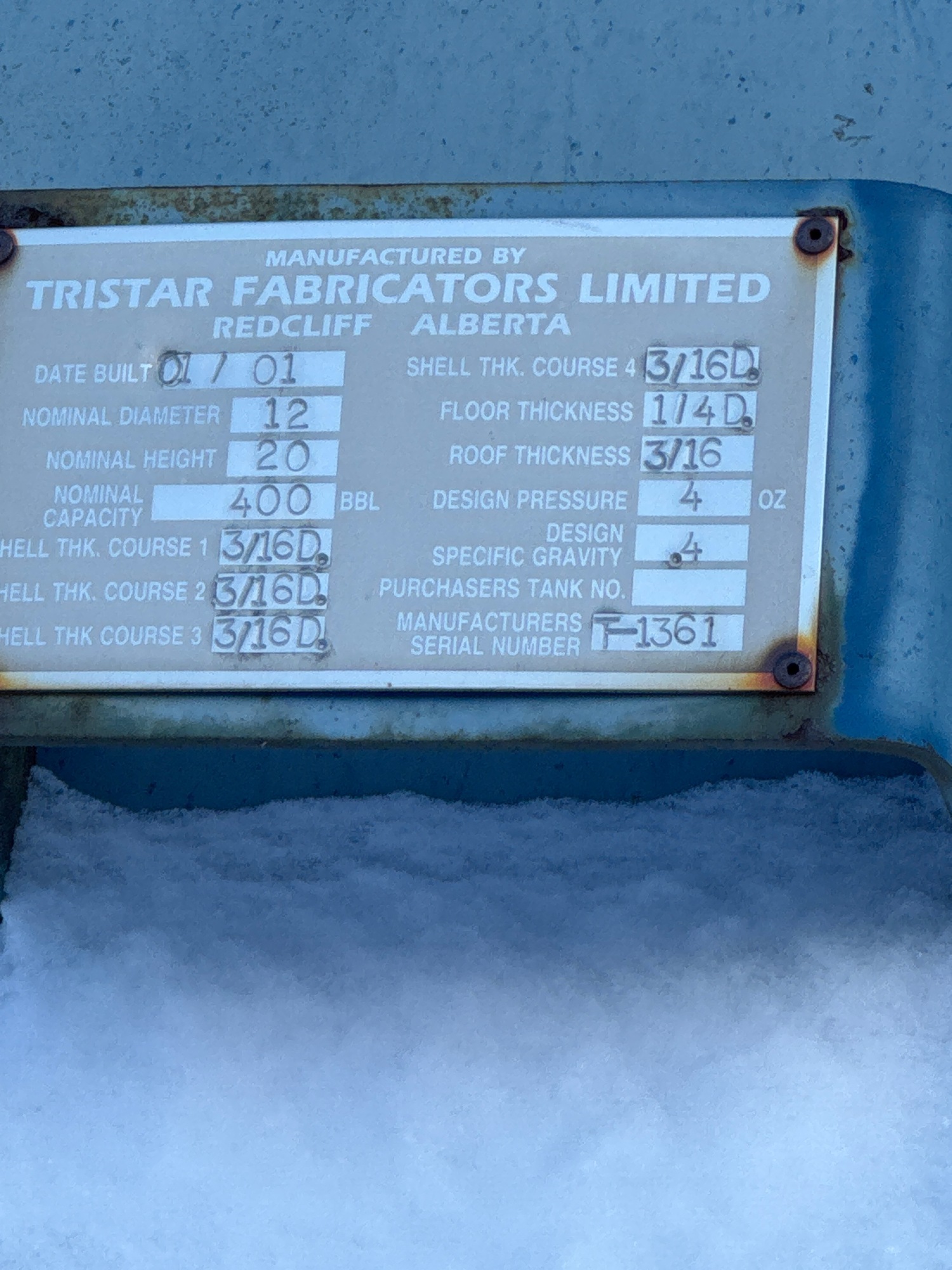 Tank Capacity (BBL) 400