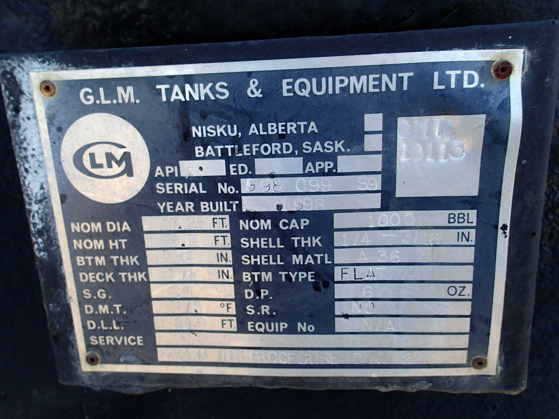 Tank Capacity (BBL) 1,000
