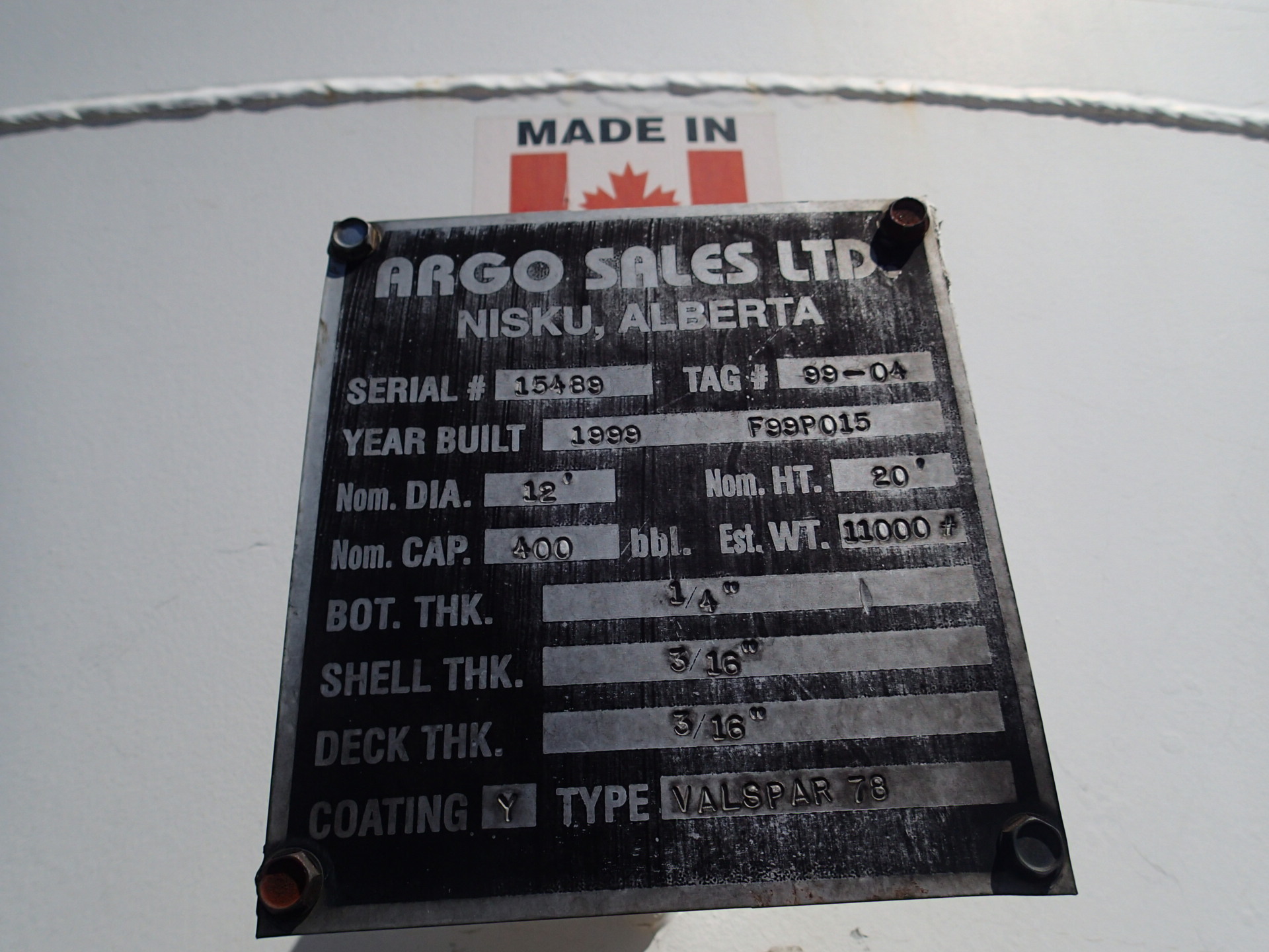 Tank Capacity (BBL) 400