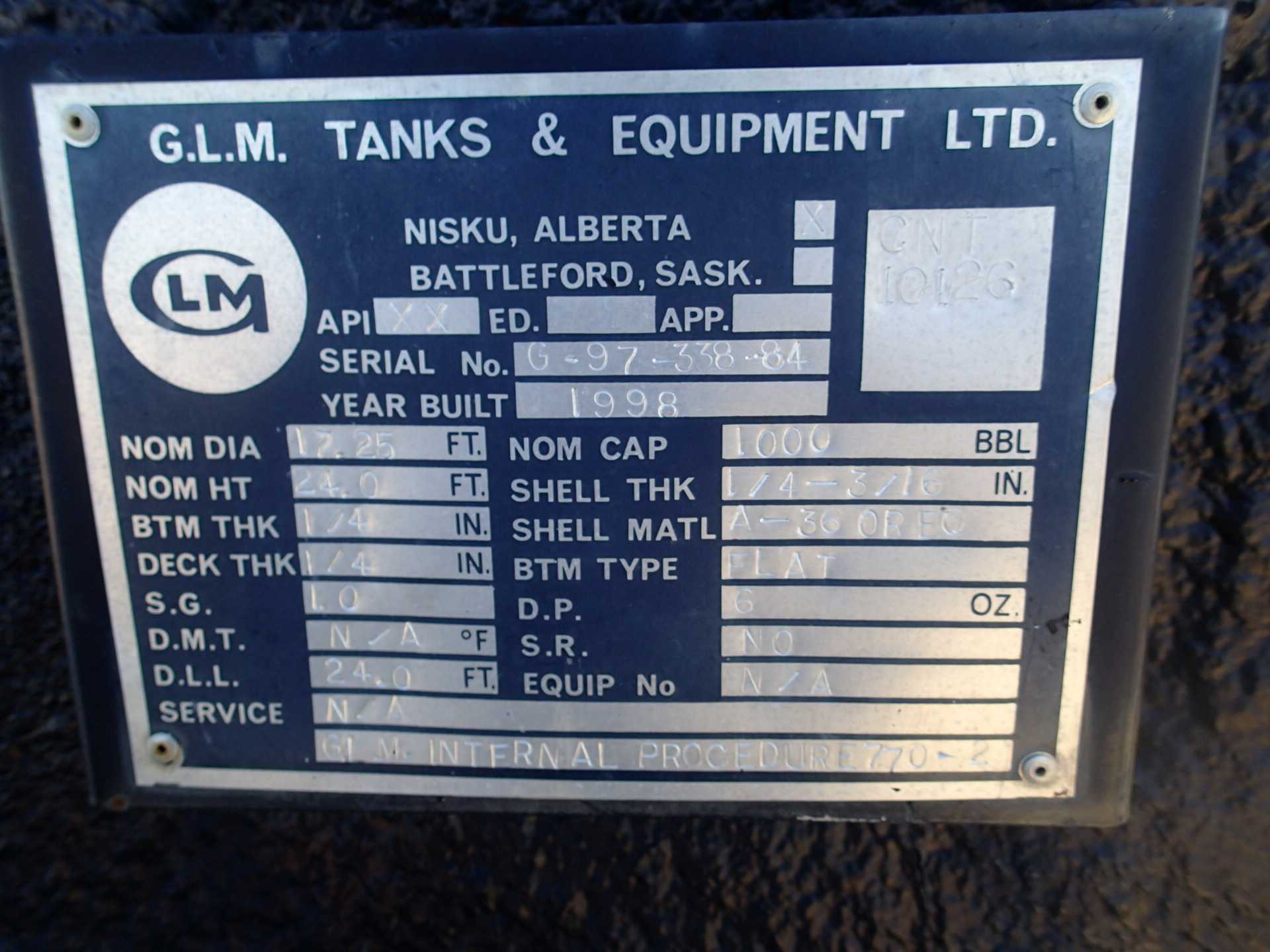 Tank Capacity (BBL) 1,000