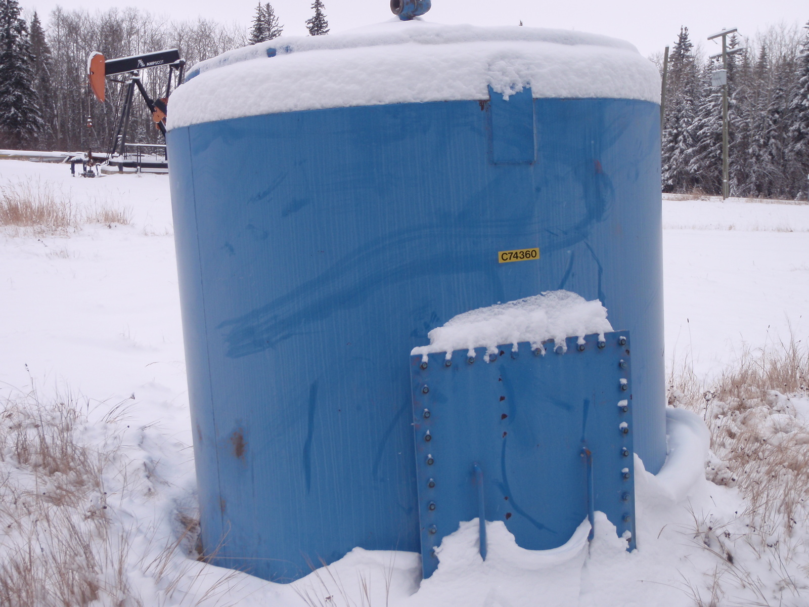 100BBL BLUE TANK NO TAGS C74360 WRITTEN ON SIDE