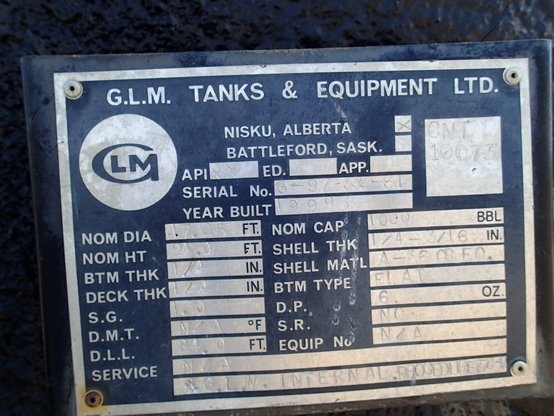 Tank Capacity (BBL) 750