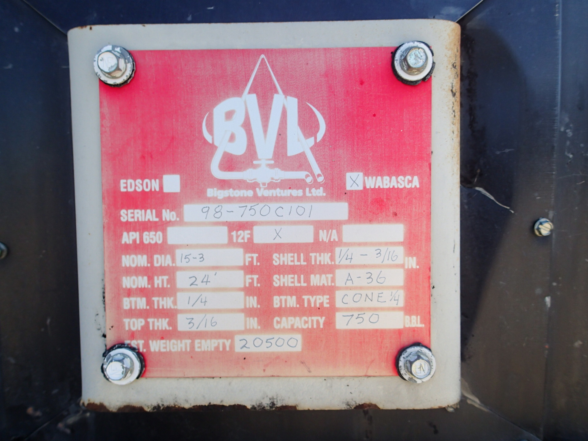 Tank Capacity (BBL) 750