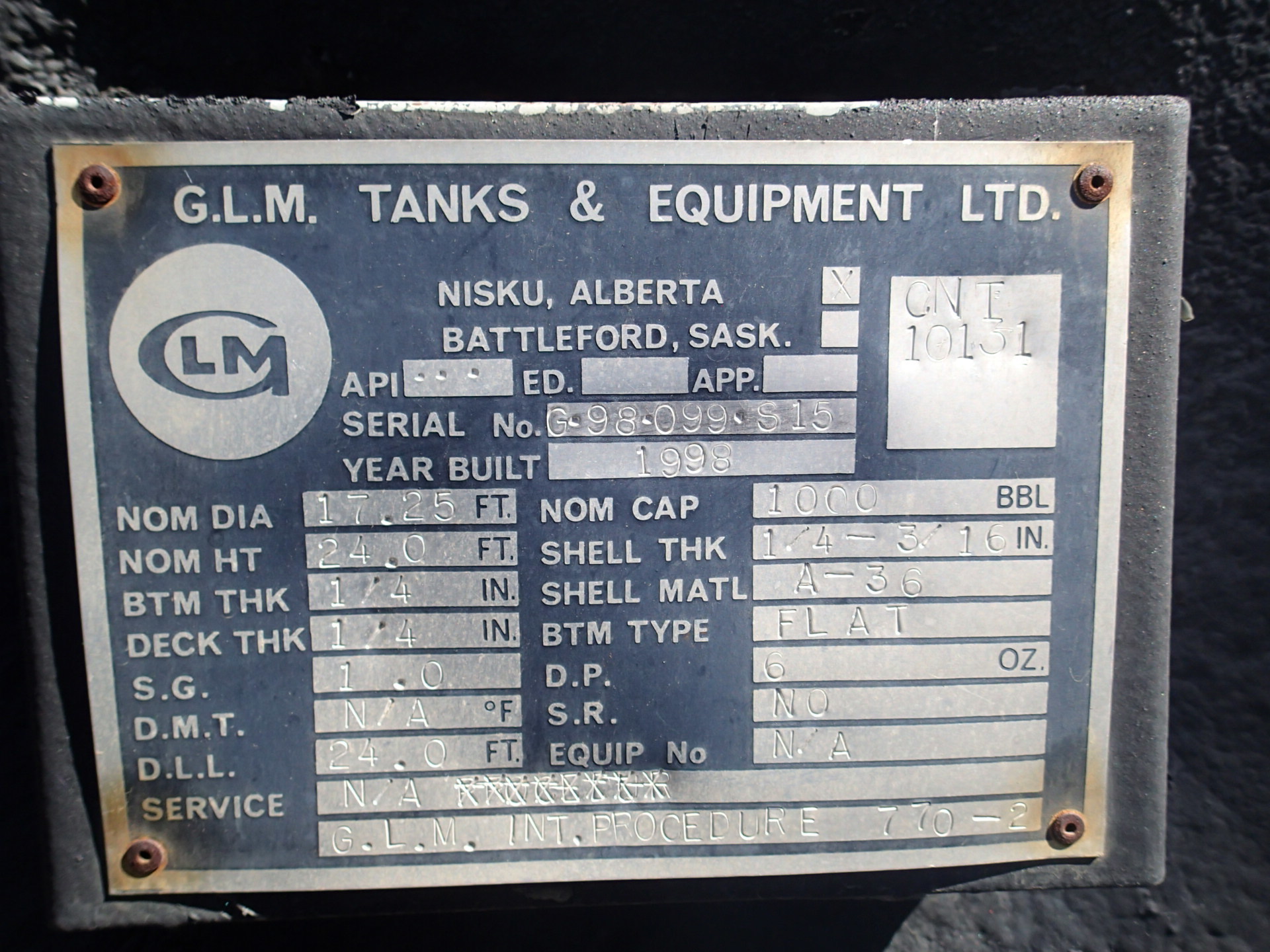 Tank Capacity (BBL) 1,000