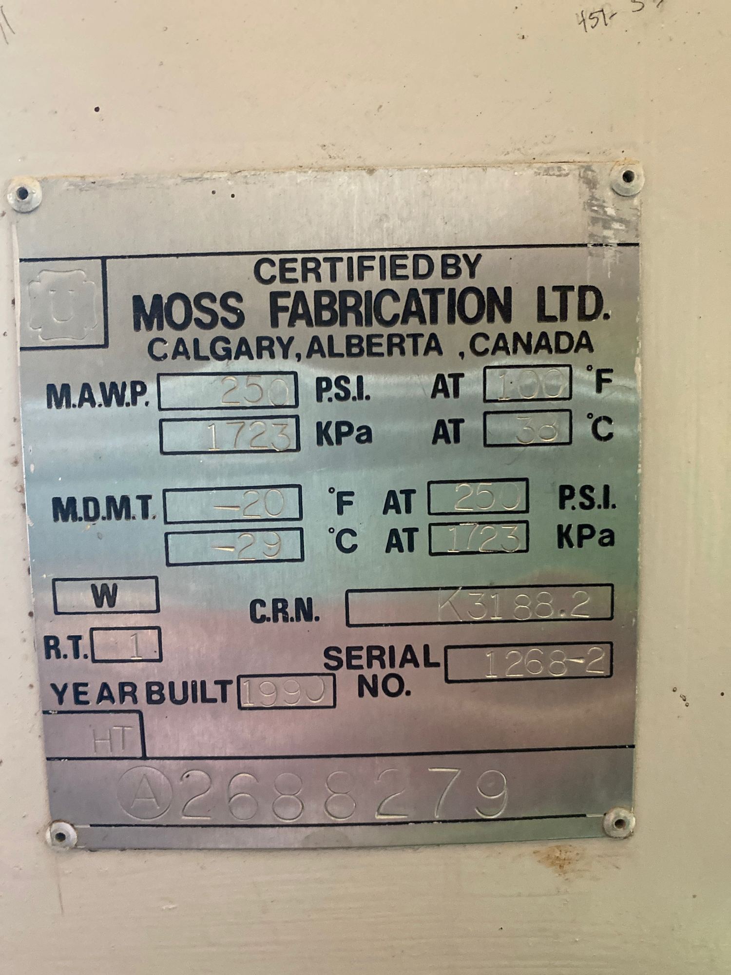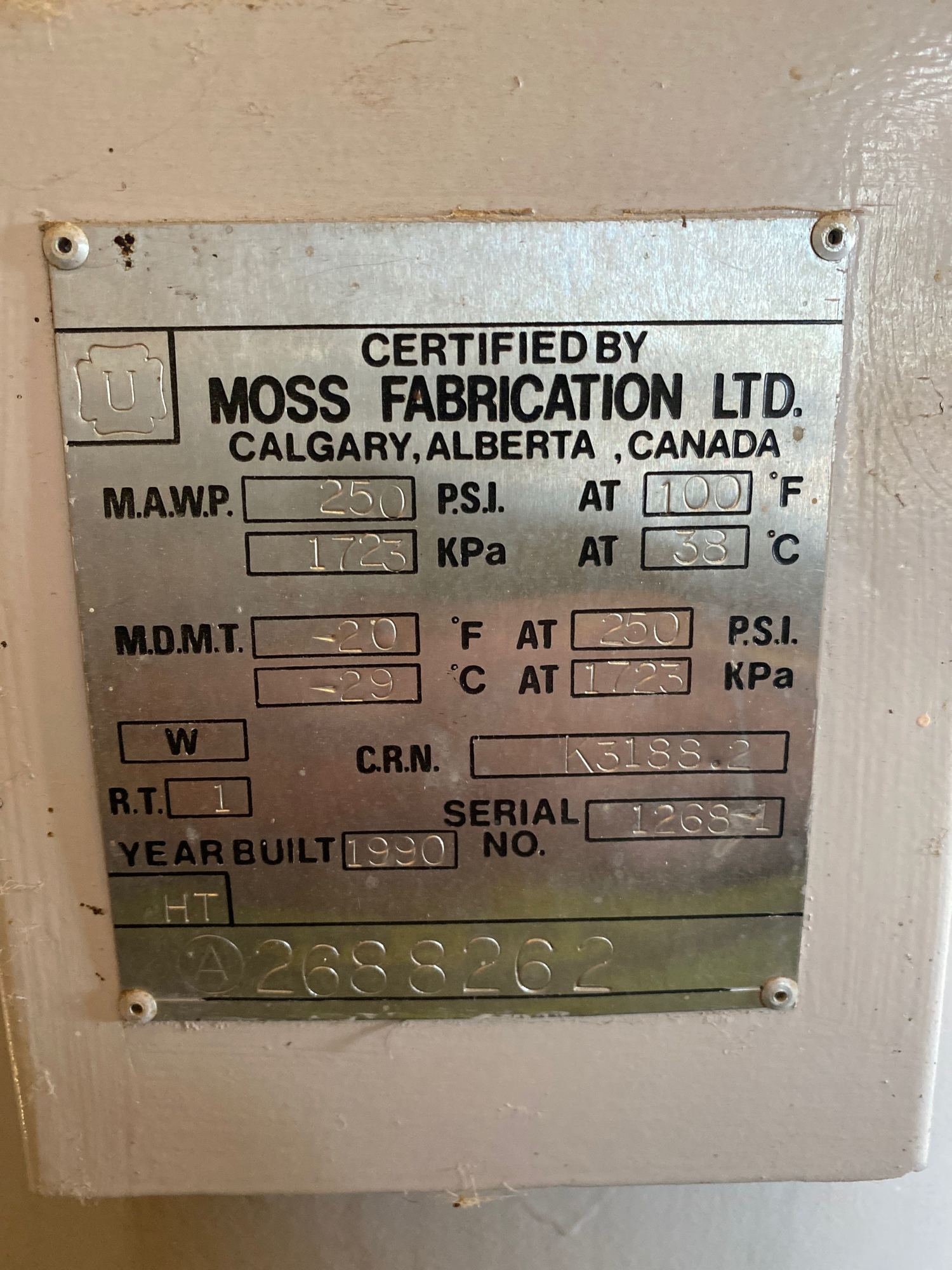 MAWP: 250 PSI at 100°F