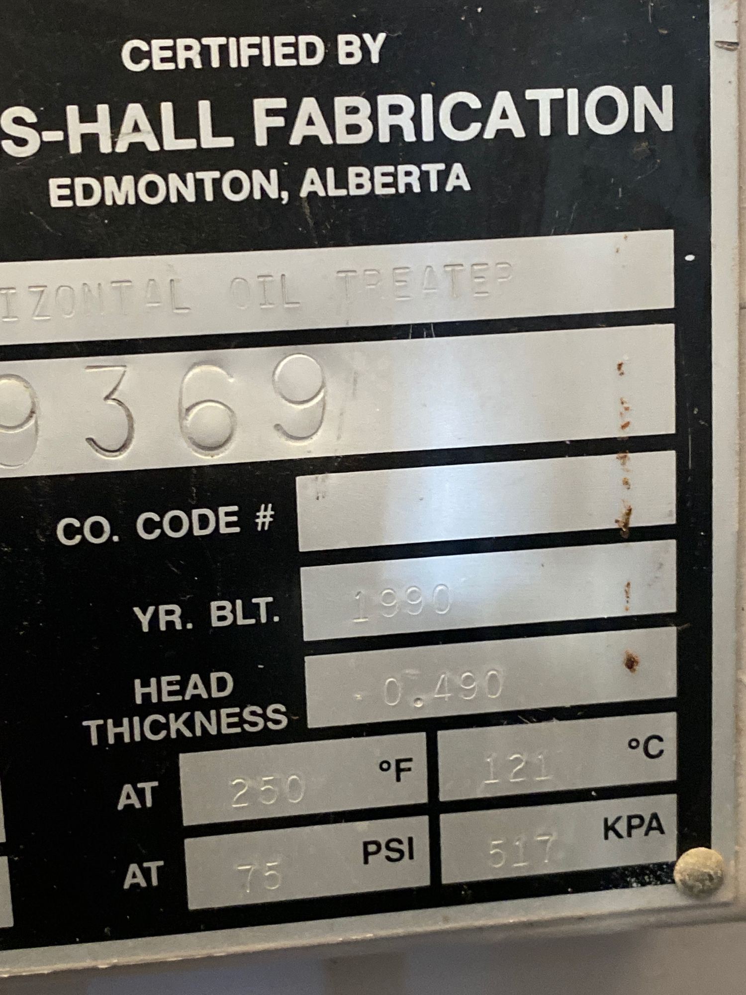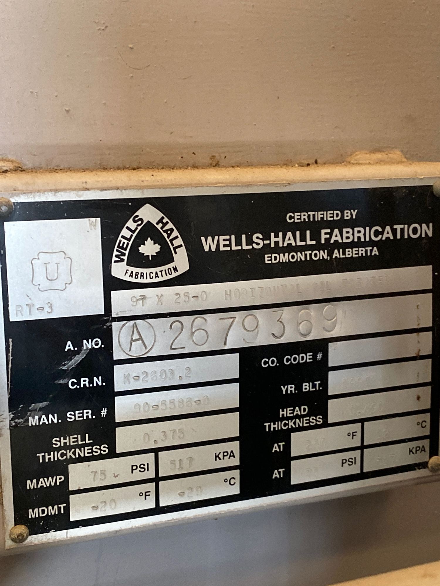 97 x 25-0 Horizontal Oil Treater Tag*