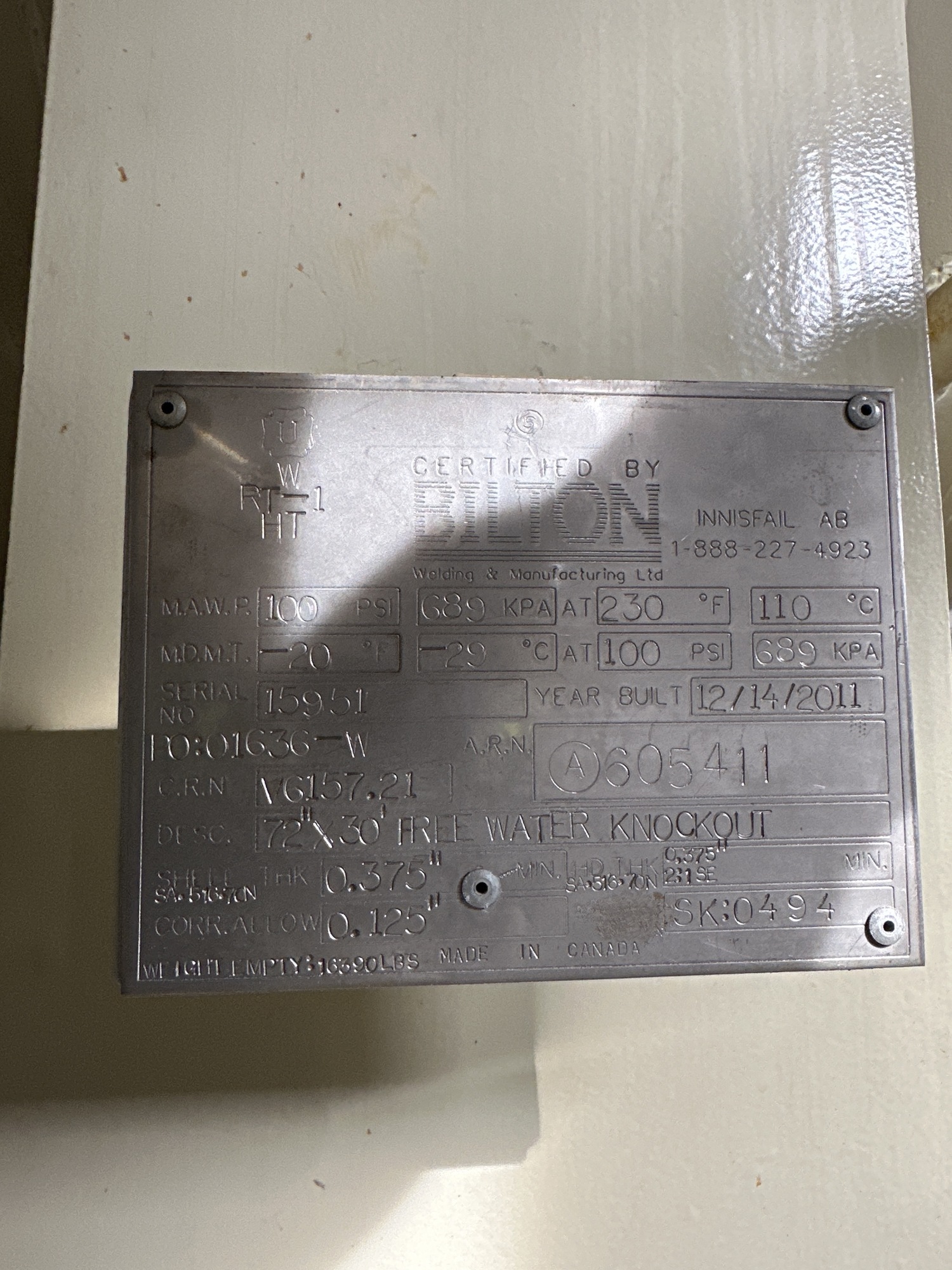 MAWP: 100 PSI at 230°F